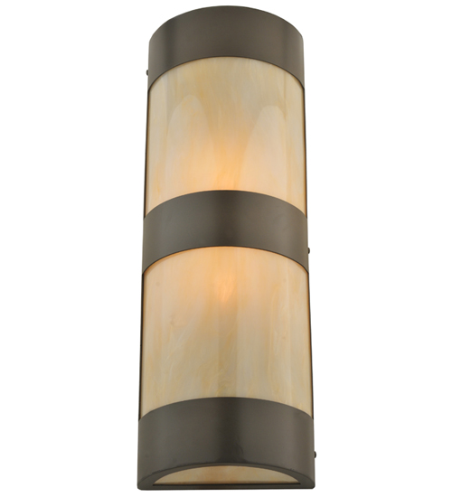 Designed with a curved profile, this appealing wall sconce defines an attractive casual aesthetic. This handsome fixture features Carmel Onyx diffusers outlined with a stunning Timeless Bronze finished frame. The sconce is ideal for placement in hallways and dining areas where you want to make a dramatic design statement in residential and hospitality settings. Perfect in homes and other spaces nationwide, from Detroit, Michigan, to Louisville, Kentucky, to Sacramento, California. The Cilindro Wall Sconce is included in our American-made, American-designed, handcrafted Modern Lighting Collection and manufactured in Yorkville, New York. UL and cUL listed for dry and damp locations.