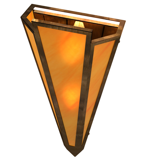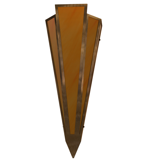 Ambra Siena Idalight is transformed into abstract lighting design similar to the famed deco designs showcased in Classic Hollywood theaters. This extraordinary V-shaped sconce is complemented with decorative accents and hardware featured in an Antique Copper finish. Ideal for foyers, corridors and other interiors in homes, home theaters, resorts, hotels and restaurants. Handcrafted by highly skilled artisans in our 180,000 square foot manufacturing facility in Yorkville, New York. Custom colors, styles and sizes are available. Dimmable energy efficient lamping options offered. UL and cUL listed for damp and dry locations.