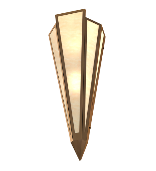Sahara Taupe Idalight is transformed into an abstract lighting design similar to the famed deco designs showcased in Classic Hollywood theaters. This extraordinary V-shaped sconce is complemented with decorative accents and hardware featured in an Antique Copper finish. The fixture is ideal for foyers, corridors and other interiors in homes, home theaters, resorts, hotels and restaurants. Handcrafted by highly skilled artisans in our 180,000 square foot manufacturing facility in Yorkville, New York. Custom colors, styles and sizes are available. Dimmable energy efficient lamping options offered. UL and cUL listed for damp and dry locations.