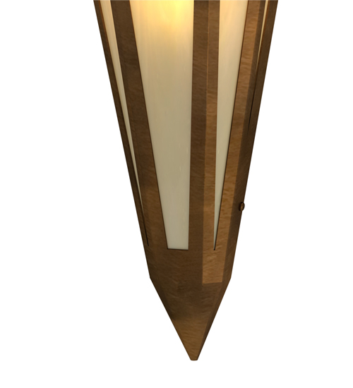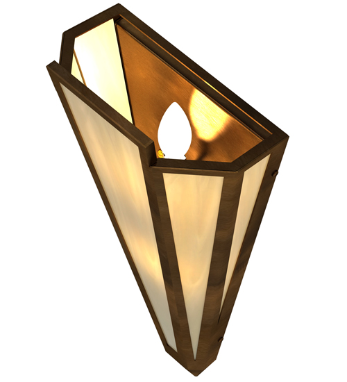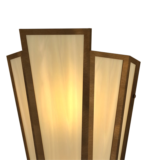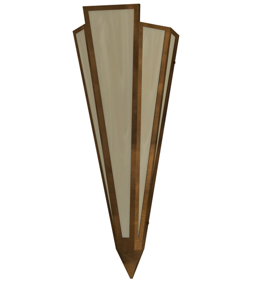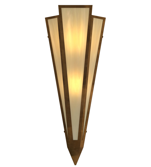 Botticino Idalight is transformed into an abstract lighting design similar to the famed deco designs showcased in Classic Hollywood theaters. This extraordinary V-shaped sconce is complemented with decorative accents and hardware featured in an Antique Copper finish. The fixture is ideal for foyers, corridors and other interiors in homes, home theaters, resorts, hotels and restaurants. Handcrafted by highly skilled artisans in our 180,000 square foot manufacturing facility in Yorkville, New York. Custom colors, styles and sizes are available. Dimmable energy efficient lamping options offered. UL and cUL listed for damp and dry locations.