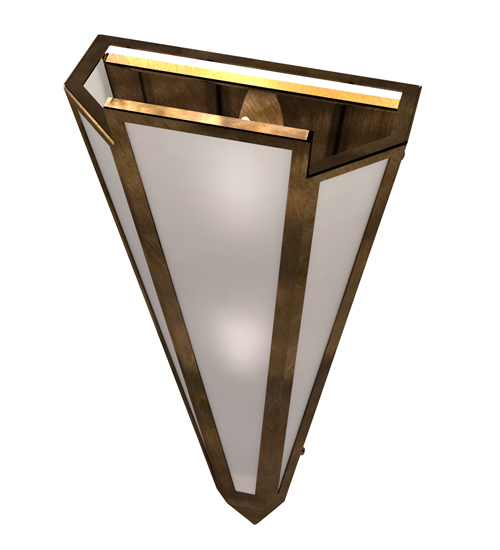 Contrail Mist Idalight is transformed into an abstract lighting design similar to the famed deco designs showcased in Classic Hollywood theaters. This extraordinary V-shaped sconce is complemented with decorative accents and hardware featured in an Antique Copper finish. The fixture is ideal for foyers, corridors and other interiors in homes, home theaters, resorts, hotels and restaurants. Handcrafted by highly skilled artisans in our 180,000 square foot manufacturing facility in Yorkville, New York. Custom colors, styles and sizes are available. Dimmable energy efficient lamping options offered. UL and cUL listed for damp and dry locations.
