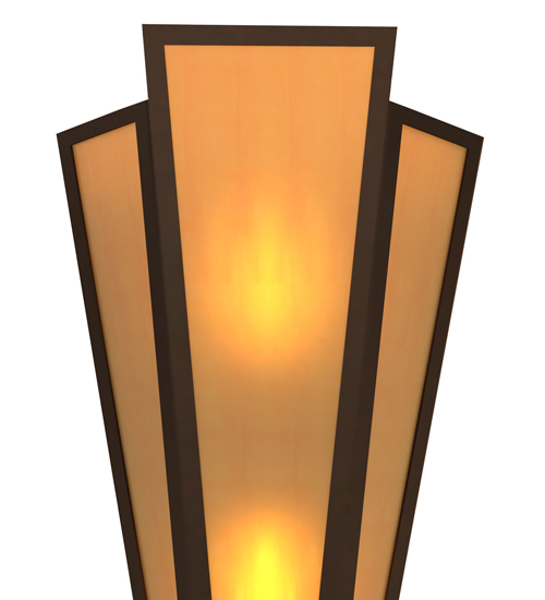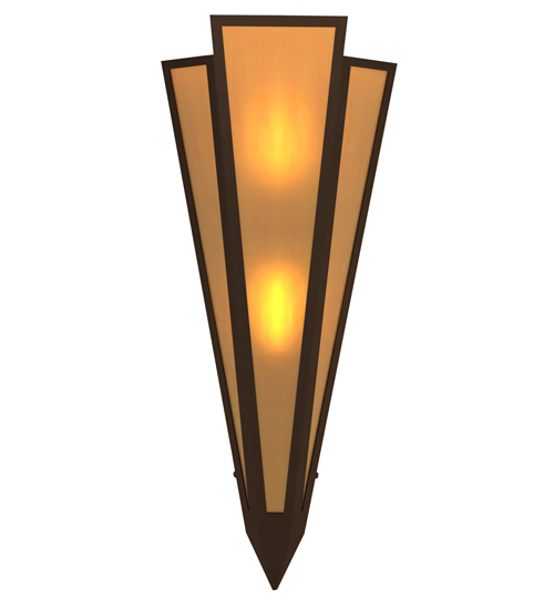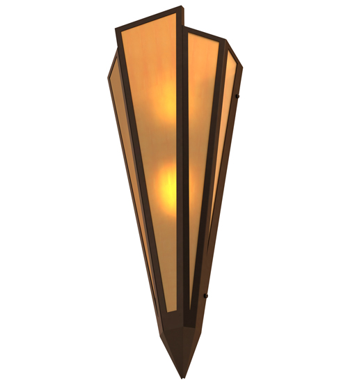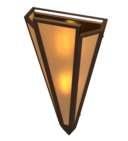 Amber Quartz Idalight is transformed into abstract lighting design similar to the famed deco designs showcased in Classic Hollywood theaters. This extraordinary V-shaped sconce is complemented with decorative accents and hardware featured in a Timeless Bronze finish. Ideal for foyers, corridors and other interiors in homes, home theaters, resorts, hotels and restaurants. Handcrafted by highly skilled artisans in our 180,000 square foot manufacturing facility in Yorkville, New York. Custom colors, styles and sizes are available. Dimmable energy efficient lamping options offered. UL and cUL listed for damp and dry locations.