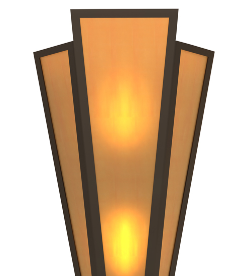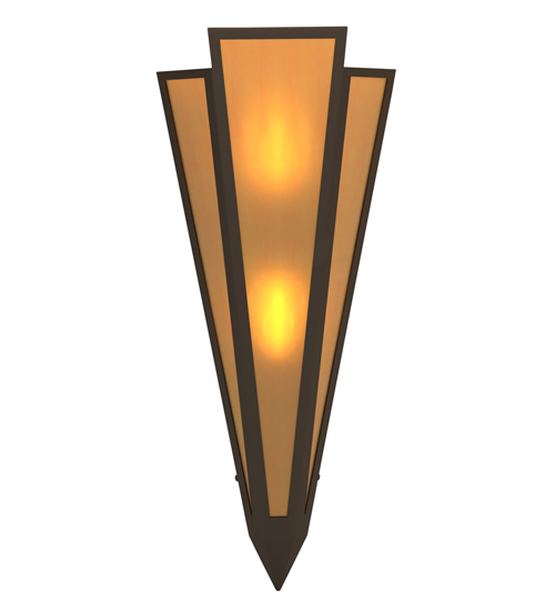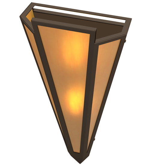 Amber Quartz Idalight is transformed into abstract lighting design similar to the famed deco designs showcased in Classic Hollywood theaters. This extraordinary V-shaped sconce is complemented with decorative accents and hardware featured in an Oil Rubbed Bronze finish. Ideal for foyers, corridors and other interiors in homes, home theaters, resorts, hotels and restaurants. Handcrafted by highly skilled artisans in our 180,000 square foot manufacturing facility in Yorkville, New York. Custom colors, styles and sizes are available. Dimmable energy efficient lamping options offered. UL and cUL listed for damp and dry locations.