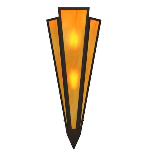 Ambra Siena Idalight is transformed into abstract lighting design similar to the famed deco designs showcased in Classic Hollywood theaters. This extraordinary V-shaped sconce is complemented with decorative accents and hardware featured in an Oil Rubbed Bronze finish. Ideal for foyers, corridors and other interiors in homes, home theaters, resorts, hotels and restaurants. Handcrafted by highly skilled artisans in our 180,000 square foot manufacturing facility in Yorkville, New York. Custom colors, styles and sizes are available. Dimmable energy efficient lamping options offered. UL and cUL listed for damp and dry locations.