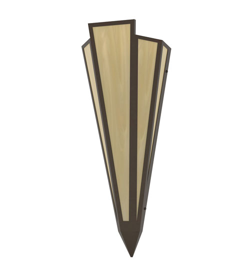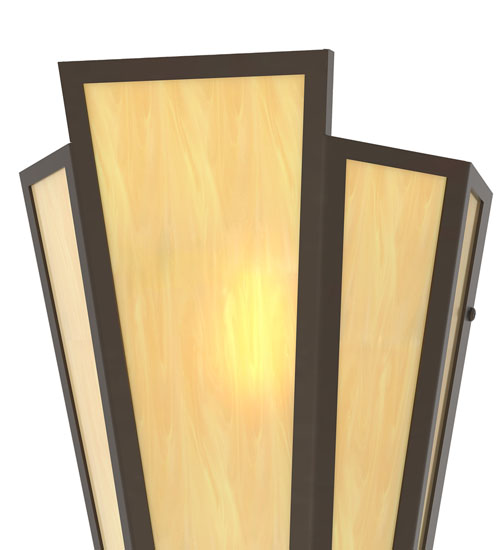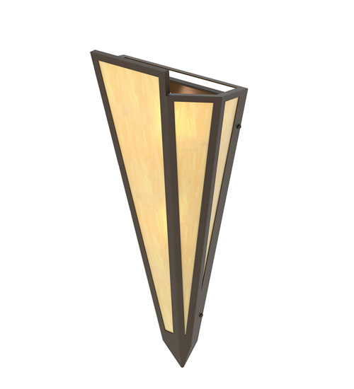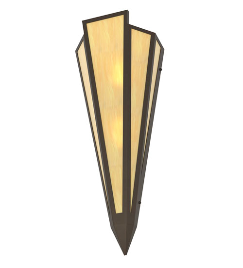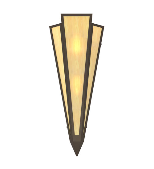 Botticino Idalight is transformed into a cool abstract lighting design similar to the famed deco designs showcased in Classic Hollywood theaters. This extraordinary V-shaped sconce is complemented with decorative accents and hardware featured in an Oil Rubbed Bronze finish. The fixture is ideal for foyers, corridors and other interiors in homes, home theaters, resorts, hotels and restaurants. Handcrafted by highly skilled artisans in our 180,000 square foot manufacturing facility in Yorkville, New York. Custom colors, styles and sizes are available. Dimmable energy efficient lamping options offered. UL and cUL listed for damp and dry locations.