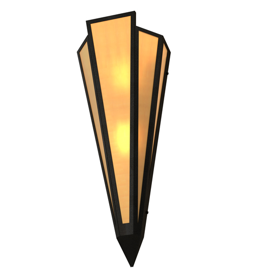 Amber Quartz Idalight is transformed into abstract lighting design similar to the famed deco designs showcased in Classic Hollywood theaters. This extraordinary V-shaped sconce is complemented with decorative accents and hardware featured in a Textured Black finish. Ideal for foyers, corridors and other interiors in homes, home theaters, resorts, hotels and restaurants. Handcrafted by highly skilled artisans in our 180,000 square foot manufacturing facility in Yorkville, New York. Custom colors, styles and sizes are available. Dimmable energy efficient lamping options offered. UL and cUL listed for damp and dry locations.