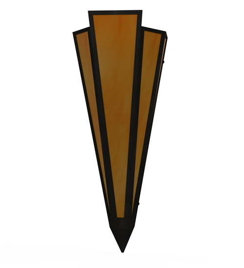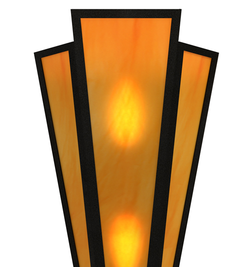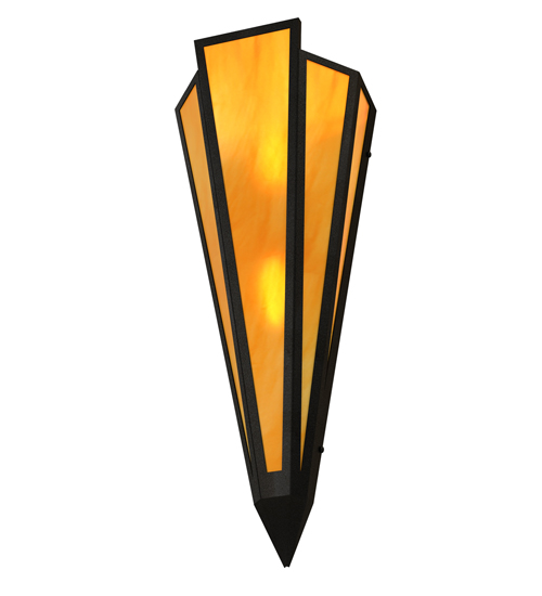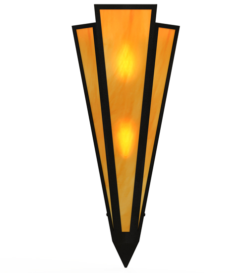 Ambra Sienna Idalight is transformed into an abstract lighting design similar to the famed deco designs showcased in Classic Hollywood theaters. This extraordinary V-shaped sconce is complemented with decorative accents and hardware featured in a Textured Black finish. The fixture is ideal for foyers, corridors and other interiors in homes, home theaters, resorts, hotels and restaurants. Handcrafted by highly skilled artisans in our 180,000 square foot manufacturing facility in Yorkville, New York. Custom colors, styles and sizes are available. Dimmable energy efficient lamping options offered. UL and cUL listed for damp and dry locations.