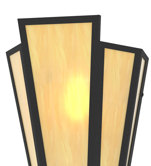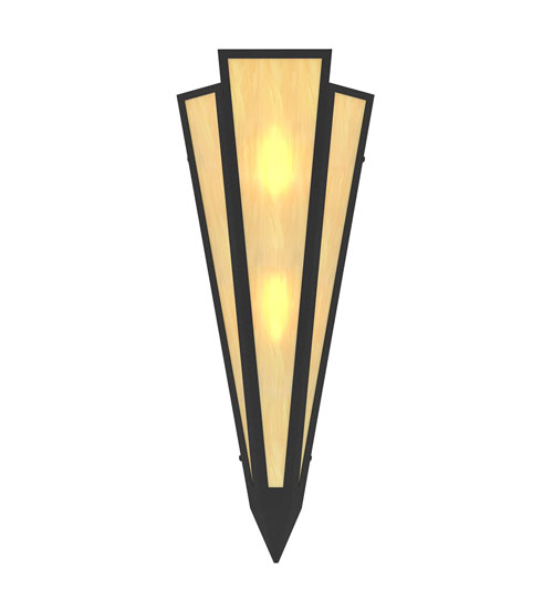 Botticino Idalight is transformed into a cool abstract lighting design similar to the famed deco designs showcased in Classic Hollywood theaters. This extraordinary V-shaped sconce is complemented with decorative accents and hardware featured in a Textured Black finish. The fixture is ideal for foyers, corridors and other interiors in homes, home theaters, resorts, hotels and restaurants. Handcrafted by highly skilled artisans in our 180,000 square foot manufacturing facility in Yorkville, New York. Custom colors, styles and sizes are available. Dimmable energy efficient lamping options offered. UL and cUL listed for damp and dry locations.