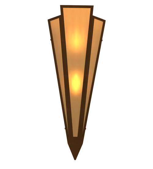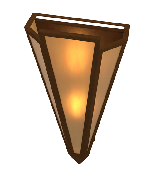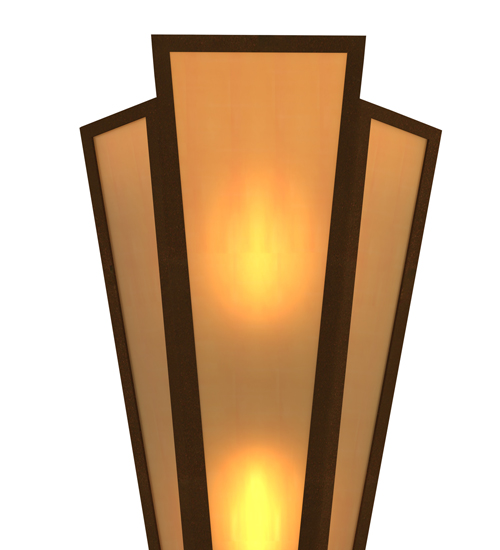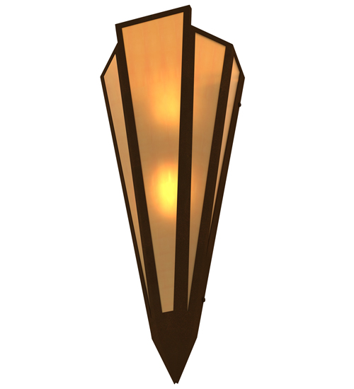 Amber Quartz Idalight is transformed into abstract lighting design similar to the famed deco designs showcased in Classic Hollywood theaters. This extraordinary V-shaped sconce is complemented with decorative accents and hardware featured in a Cafe Noir finish. Ideal for foyers, corridors and other interiors in homes, home theaters, resorts, hotels and restaurants. Handcrafted by highly skilled artisans in our 180,000 square foot manufacturing facility in Yorkville, New York. Custom colors, styles and sizes are available. Dimmable energy efficient lamping options offered. UL and cUL listed for damp and dry locations.