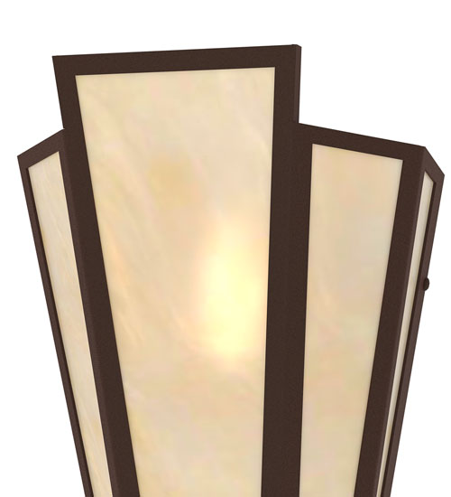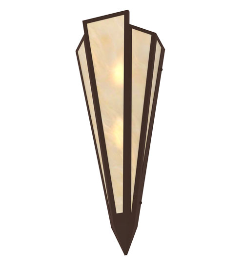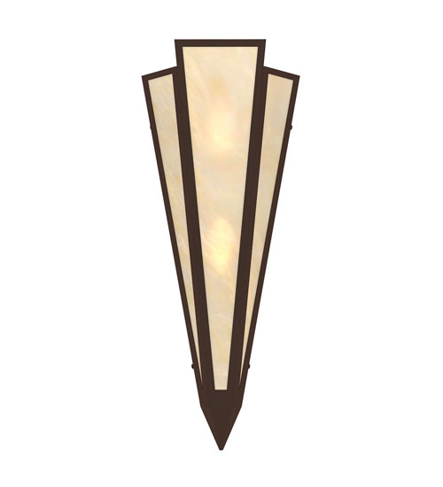 Sahara Taupe Idalight is transformed into an abstract lighting design similar to the famed deco designs showcased in Classic Hollywood theaters. This extraordinary V-shaped sconce is complemented with decorative accents and hardware featured in a Cafe Noir finish. The fixture is ideal for foyers, corridors and other interiors in homes, home theaters, resorts, hotels and restaurants. Handcrafted by highly skilled artisans in our 180,000 square foot manufacturing facility in Yorkville, New York. Custom colors, styles and sizes are available. Dimmable energy efficient lamping options offered. UL and cUL listed for damp and dry locations.
