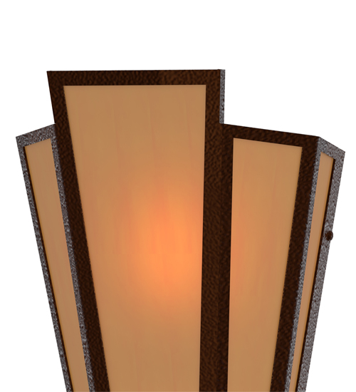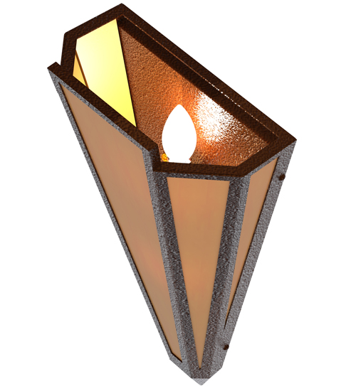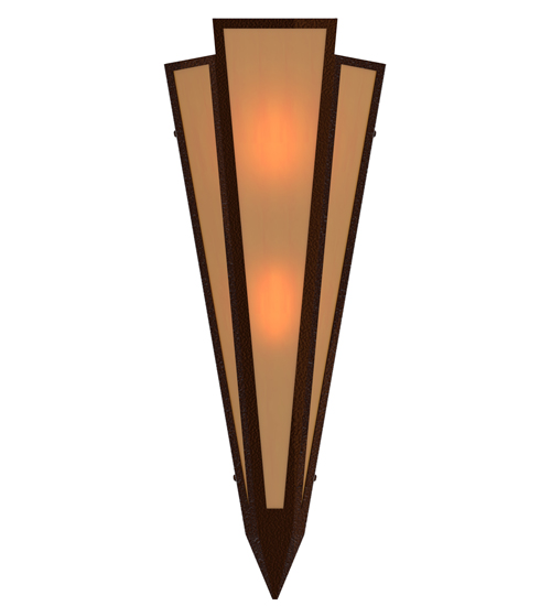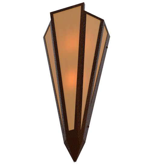 Amber Quartz Idalight is transformed into abstract lighting design similar to the famed deco designs showcased in Classic Hollywood theaters. This extraordinary V-shaped sconce is complemented with decorative accents and hardware featured in a Sepia Brown finish. Ideal for foyers, corridors and other interiors in homes, home theaters, resorts, hotels and restaurants. Handcrafted by highly skilled artisans in our 180,000 square foot manufacturing facility in Yorkville, New York. Custom colors, styles and sizes are available. Dimmable energy efficient lamping options offered. UL and cUL listed for damp and dry locations.