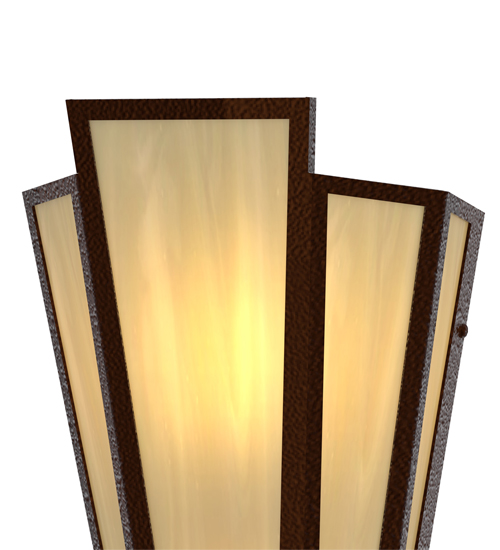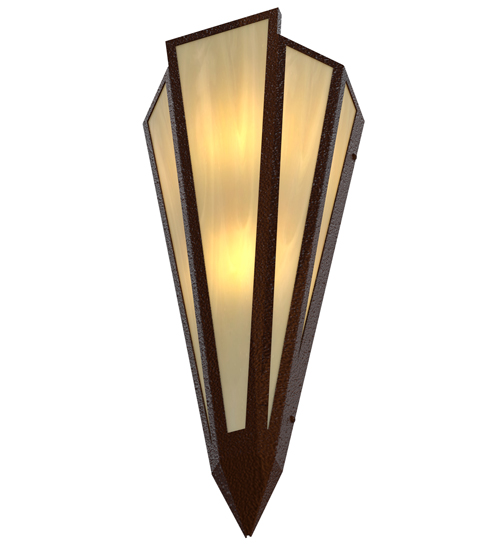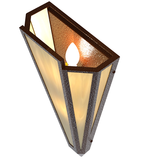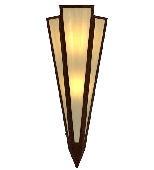 Botticino Idalight is transformed into abstract lighting design similar to the famed deco designs showcased in Classic Hollywood theaters. This extraordinary V-shaped sconce is complemented with decorative accents and hardware featured in a Sepia Brown finish. Ideal for foyers, corridors and other interiors in homes, home theaters, resorts, hotels and restaurants. Handcrafted by highly skilled artisans in our 180,000 square foot manufacturing facility in Yorkville, New York. Custom colors, styles and sizes are available. Dimmable energy efficient lamping options offered. UL and cUL listed for damp and dry locations.