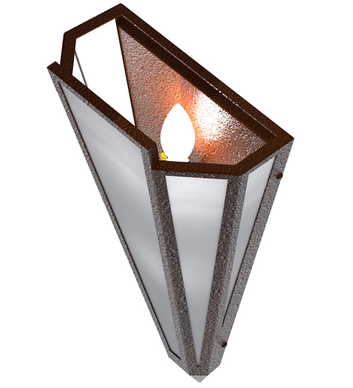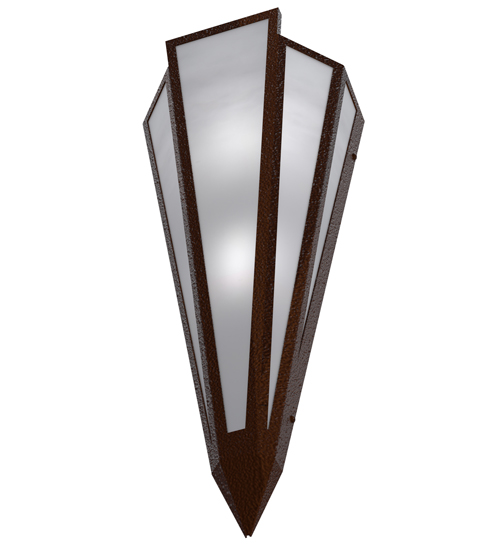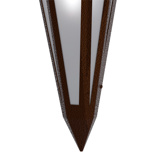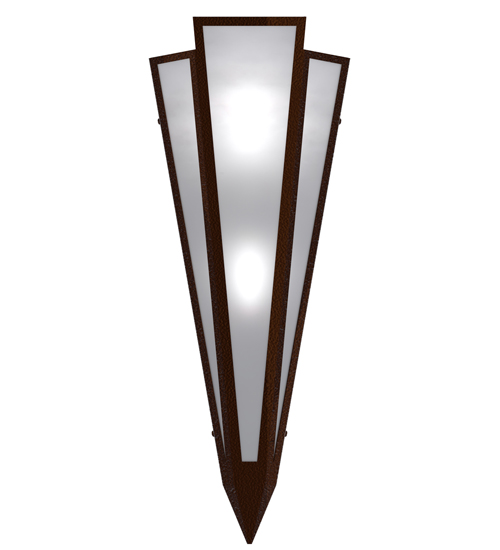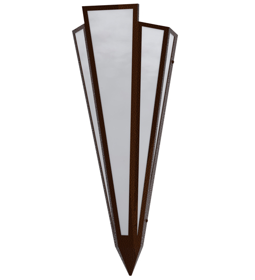 White Art Glass is transformed into abstract lighting design similar to the famed deco designs showcased in Classic Hollywood theaters. This extraordinary V-shaped sconce is complemented with decorative accents and hardware featured in a Sepia Brown finish. Ideal for foyers, corridors and other interiors in homes, home theaters, resorts, hotels and restaurants. Handcrafted by highly skilled artisans in our 180,000 square foot manufacturing facility in Yorkville, New York. Custom colors, styles and sizes are available. Dimmable energy efficient lamping options offered. UL and cUL listed for damp and dry locations.