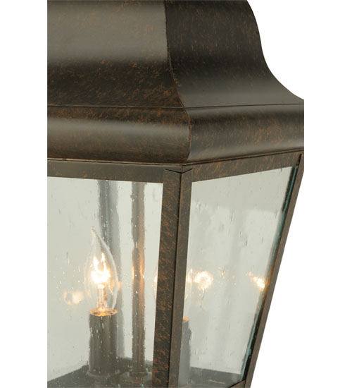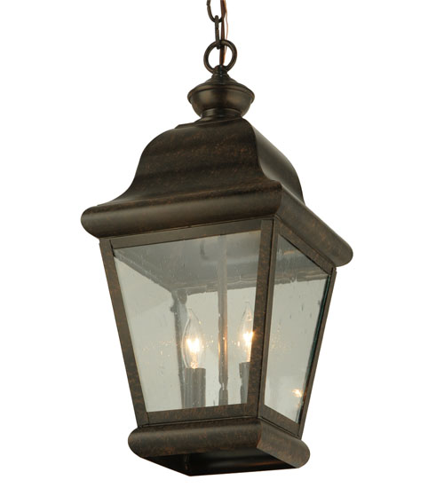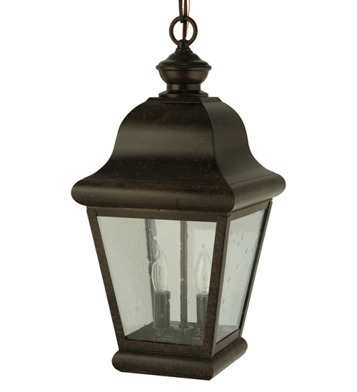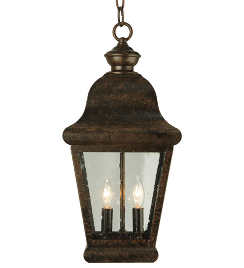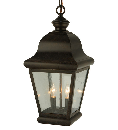 Enjoy the rich time-honored look of Lapalma, this exquisite lantern design revealing classic styling and handcrafted construction. The shapely lantern features Clear Seeded glass, which is complemented with a frame, scroll arm and accents, and hardware featured in a Coffee Bean finish. The pendant illuminates with 2 customer-supplied faux candlelights is available in custom colors, designs, sizes and dimmable energy efficient lamping options such as LED. The fixture is UL and cUL listed for wet and dry locations.