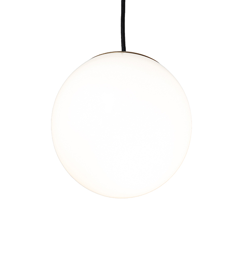 A curvaceous, stylish mini pendant. Eye-catching appeal integrates a classic White Opal Glass Orb shade complemented with handsome hardware in a Solar Black finish and a Brushed Brass decorative accent. The fixture is ideal for placement in groups over islands and tables in residential, hospitality, and commercial environments. The overall height ranges from 9 to 70 inches as the suspension cord adjusts on location to meet your lighting specifications. The Bola Mini Pendant is included in the American-made, American-designed, handcrafted Modern Lighting Collection and manufactured in Yorkville, New York. UL & cUL listed for dry and damp locations.