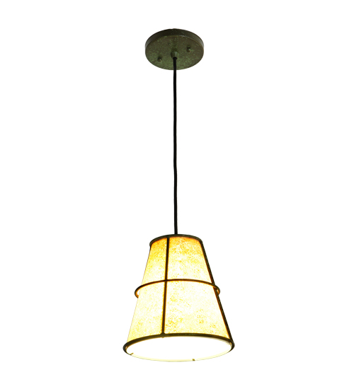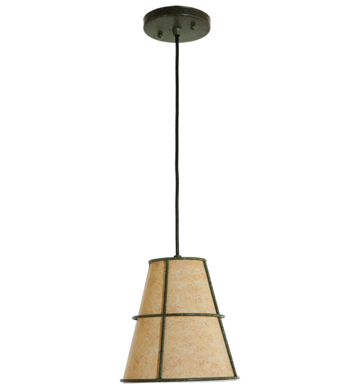 Designed with a cone shaped profile and architectural styling, this appealing ceiling fixture defines a sophisticated aesthetic. This pendant features a distinctive Handpainted Parchment shade, which is enhanced with a decorative frame and hardware featured in a Weathered Brass finish. Handcrafted by highly skilled artisans in our manufacturing facility in Upstate New York, this transitional styled pendant is available in a wide range of custom choices including various designs, colors, sizes and dimmable energy efficient lamping options such as LED. This fixture is UL and cUL listed for damp and dry locations.