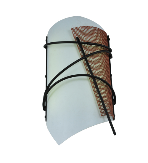 Embrace the extraordinary industrial look of this eye-catching wall lighting design. The wall sconce features a curvaceous Arctic Idalight lens surrounded by hand-curved Weave-Tex metal mesh in a Solar Black finish. The ADA-compliant fixture illuminates with energy-efficient LEDs for quality illumination and long life. The Kiltered LED Wall Sconce is included in our American-made, American-designed, handcrafted Industrial Lighting Collection and manufactured in Yorkville, New York. The fixture is UL and cUL listed for dry and damp locations.