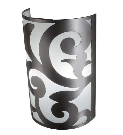 An exquisite lighting design. This ADA Compliant decorative wall sconce features stunning Statuario Idalight diffuser. The shade is complemented with an exquisite scrolled design in a Nickel powder coat finish. Handcrafted by highly skilled artisans in our 180,000 square foot manufacturing facility in Yorkville, New York. Lens colors, metal finishes and sizes can be customized to meet your needs. UL and cUL listed for damp and dry locations.