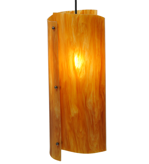 Like a large piece of saltwater taffy, this sweet pendant design is created with Ambra Siena Idalight which is hand-curved and wrapped around hardware with graceful allure. This exquisite ceiling luminaire delivers beautiful ambient illumination for a wide range of decorative lighting applications in residential and commercial settings. The frame and hardware are featured in a Coffee Bean finish. Handcrafted by highly skilled artisans in our 180,000 square foot manufacturing facility in Yorkville, New York. Custom designs, colors, and sizes available. UL and cUL listed for damp and dry locations