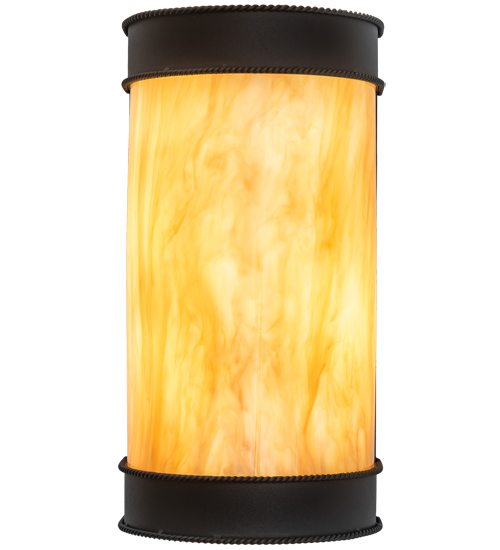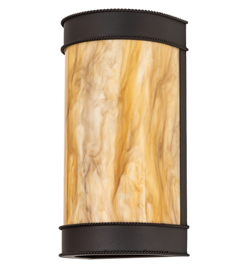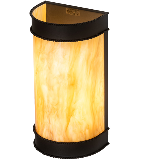 A strikingly handsome yet elegant wall sconce design complemented with the luster of appealing metal hardware. Stunning Travertine Idalight diffuses beautiful ambient light through this lantern which is complemented with a frame, decorative accents and hardware featured in a Wrought Iron finish. Handcrafted by highly skilled artisans in our 180,000 square manufacturing facility in Yorkville, New York. Candlelight colors, metal finishes and fixtures sizes can be customized to meet your needs. UL and cUL listed for damp and dry locations.