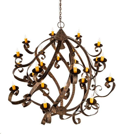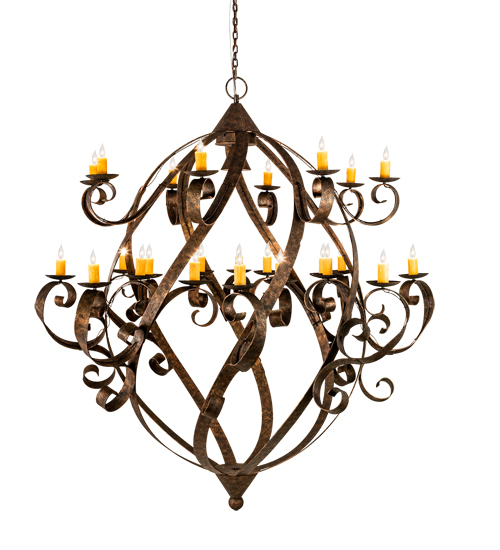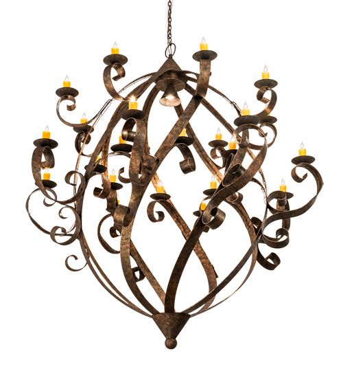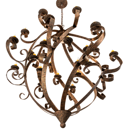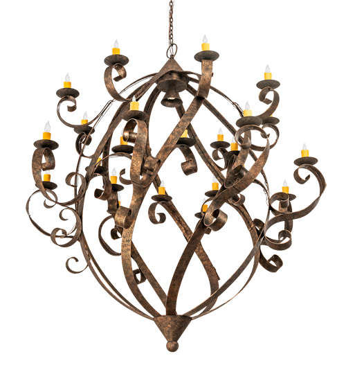 Caliope is the Winner of Best of 2019 for Decorative Lighting from EnLIGHTenment magazine. A magnificent decorative chandelier with an elegant presence. The prodigious Caliope is adorned with 24 Amber faux candlelights perched on delicate bobeches embraced by Hand-Forged Iron Scrolled arms. A central downlight adds a layer of illumination. Decorative accents are featured in a Classic Rococco finish. The overall height ranges from 87 to 158 inches as the chain length can be easily adjusted in the field to accommodate your specific lighting application needs. Caliope is featured at the BDNY Expo in New York’s Javits Center. Handcrafted in our 180,000 square foot manufacturing facility in Yorkville, NY. UL and cUL listed.