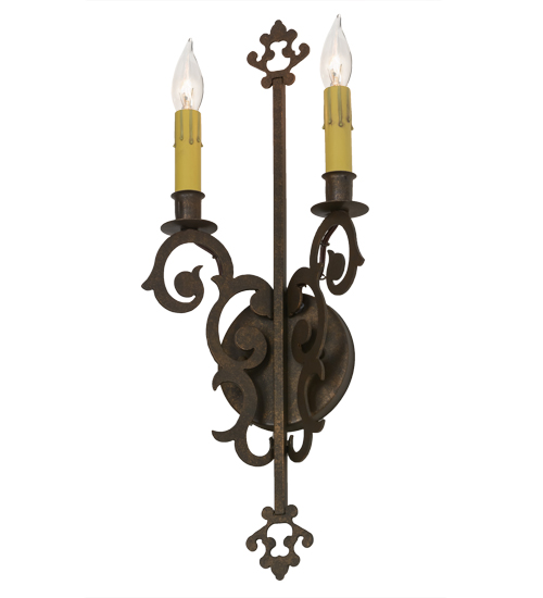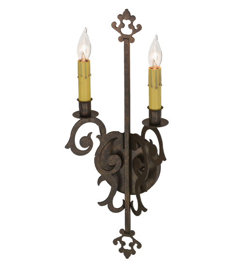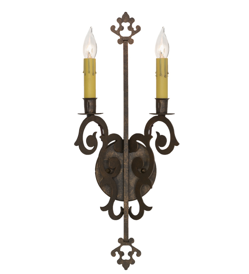 The symbols of enlightenment, encouragement, clarity and reassurance, candlelights demonstrate how love brightens our lives. Like joining two individuals into one couple, Aneila pairs two faux candlelights topping miniature bobeches with old world designed hardware and back plate featured in a Gilded Tobacco finish. Handcrafted in the USA.