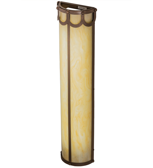 A striking transitional styled wall fixture for residential, hospitality and commercial applications, the Carousel features a Sahara Taupe Idalight shade which is complemented with hardware in an Antique Rust finish. The tall cylindrical wall luminaire will make a design statement in hallways and other rooms throughout your space. Handcrafted in our Yorkville, NY manufacturing facility, Carousel is available in custom sizes, styles, finishes and dimmable energy efficient lamping options. UL and cUL listed for dry and damp locations.