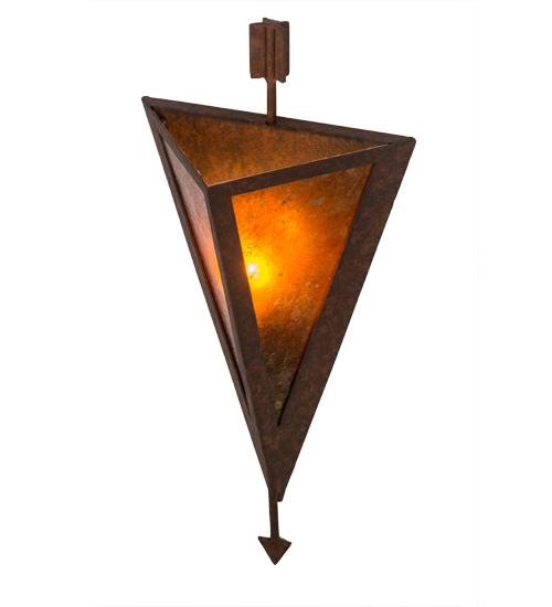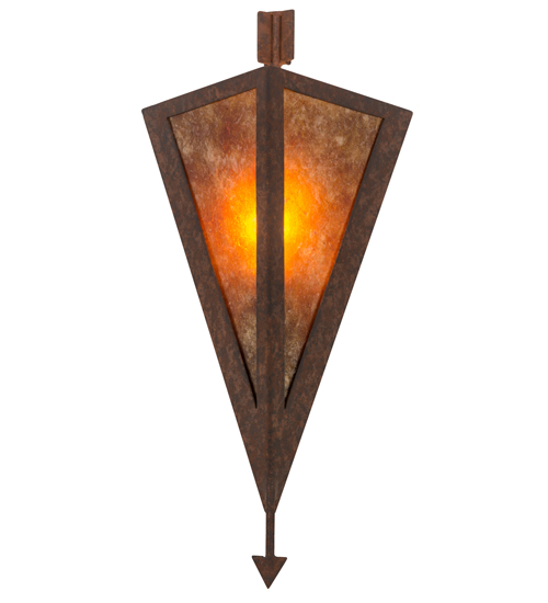 Accentuated with an Arrowhead accent, this wall sconce will enhance your interior space with welcoming illumination and a striking inverted profile featuring Amber Mica. The shade is complemented with a handsome frame and hardware featured in a handsome Rusty Nail finish. Custom crafted in the USA, this fixture is available in custom sizes, styles, colors and dimmable energy efficient lamping options. The sconce is UL and cUL listed for damp and dry locations.