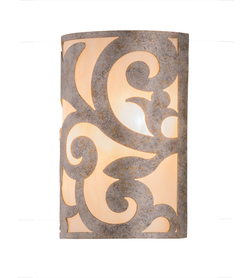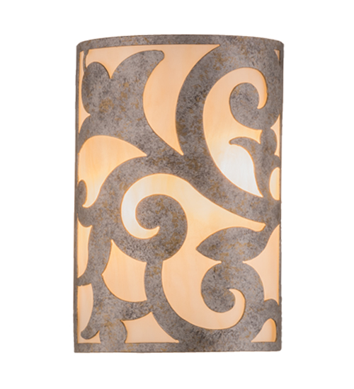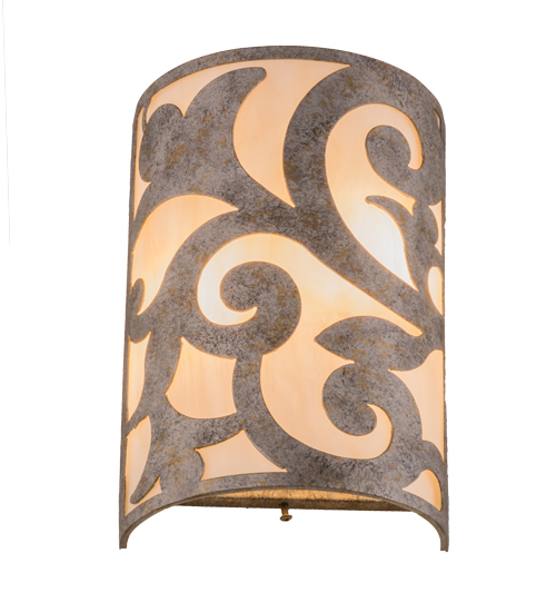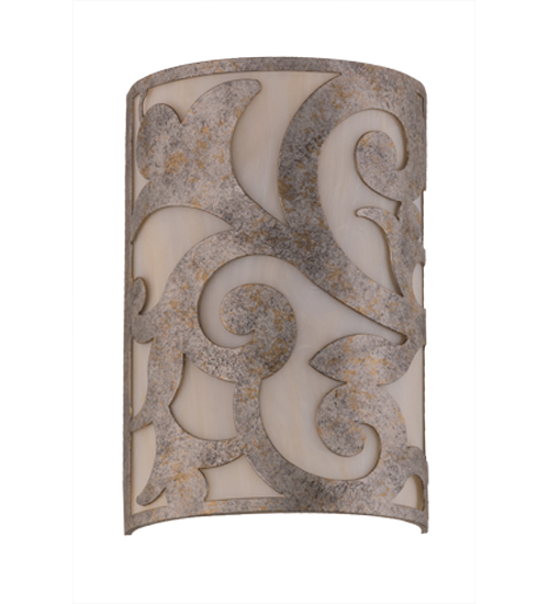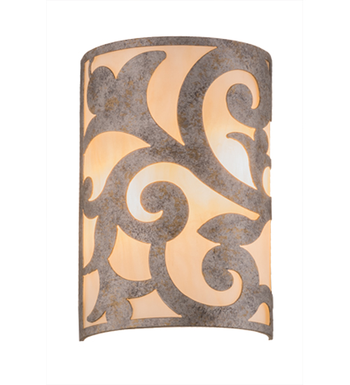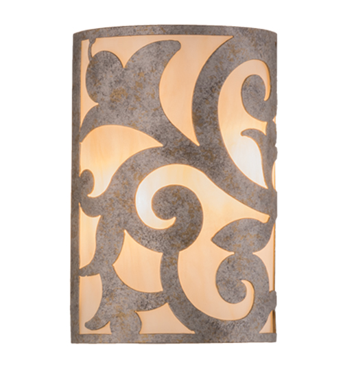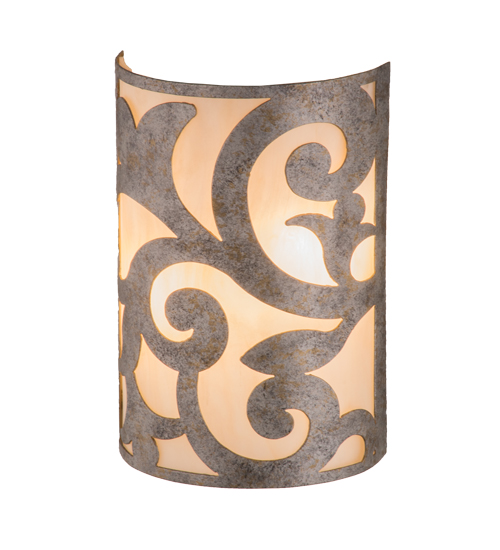 An exquisite lighting design, this decorative wall sconce features stunning Sahara Taupe Idalight, which is complemented with scroll designed hardware in a Corinth finish. The wall fixture, which is handcrafted by our artisans in our facility in the USA, can be custom crafted in nearly any color, size, style or dimmable energy efficient lamping option.