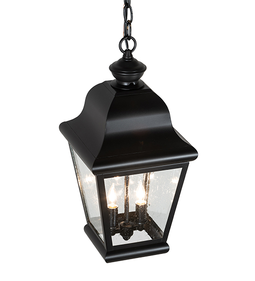 Add an element of European elegance and timeless sophistication to the interiors or exteriors of residential, hospitality, and commercial settings. The handsome Indoor/Outdoor Lantern features a sparkling Clear Seeded Glass Lens that reveals 2 Complementary faux candlelights and is enhanced with an elegant Brass frame featuring a Black Patina. Inspired by beautiful homes and streetscapes from Frankenmuth, Michigan, to Healdsburg, California, to Leavenworth, Washington. The Palmer Pendant is featured in our American-made, American-designed, handmade Traditional Lighting Collection. Manufactured in Yorkville, New York. UL & cUL listed for dry, damp, and wet locations.
