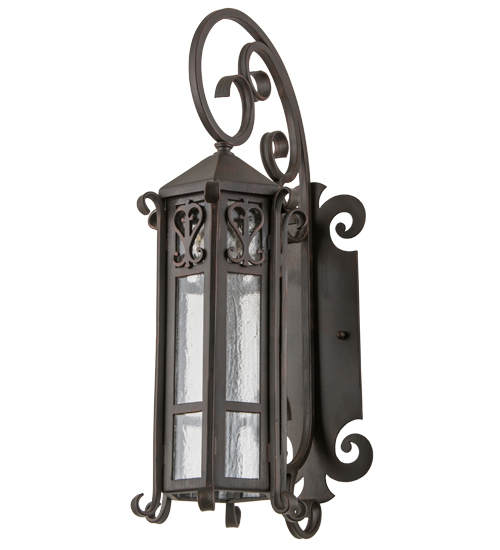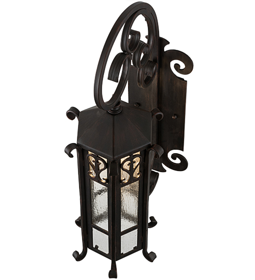 Designed to create a rich, luxurious look, this high-styled wall fixture features Clear Seeded glass which is enhanced with scrolled accents in a Weathered Red Roof finish. This sconce is ideal to complement a variety of architectural styles for today’s exteriors and interiors. Custom crafted by highly skilled artisans at our 180,000 square foot manufacturing facility in Yorkville, New York. Special sizes and finishes available. Dimmable energy efficient lamping options offered. UL and cUL listed for dry, damp and wet locations.