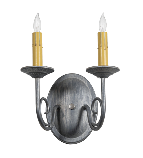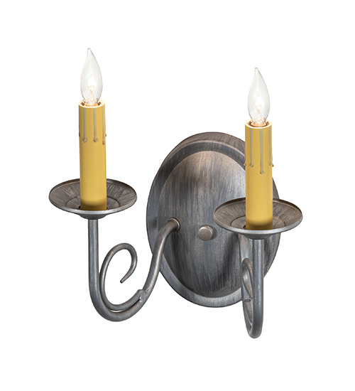 A sumptuous decorative design evokes a rich lustrous charm. Jenna features an Antique Iron Ore finish that will highlight the walls of any room. Hand-Forged Iron Scrollwork with sturdy bobeches embrace two Ivory faux candlelights that deliver beautiful ambient illumination. Handcrafted by highly skilled artisans in our 180,000 square foot manufacturing facility in Yorkville, New York. Candlelight colors, metal finishes and fixture sizes can be customized to your needs. UL and cUL listed for dry and damp locations.