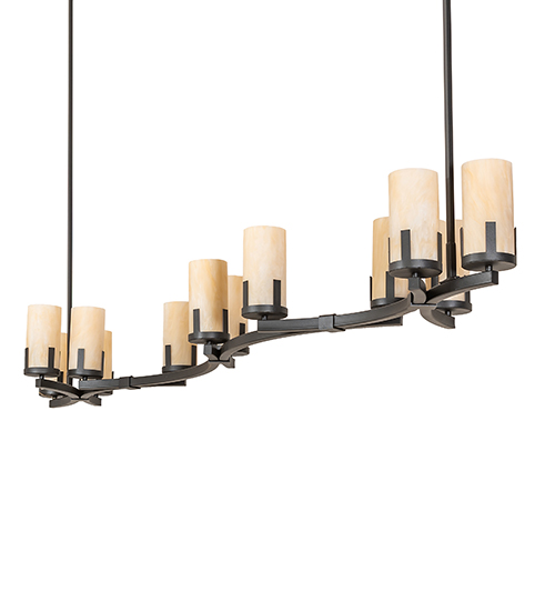 Blending an updated Rustic style with a Gothic revival look, Cero is custom crafted with 12 Sahara Taupe Idalight Cylindres embraced by a curved metal frame that is hand-finished in Charred Iron. The Grandiose, oblong fixture is ideal for illuminating dining areas, conference tables, lobbies, and other residential and commercial spaces. The overall height ranges from 71 to 217 inches as the chain length can be easily adjusted on location to accommodate your specific lighting application needs. The Cero 12 Light Oblong Chandelier is included in our American-made, American-designed, handmade Transitional Lighting Collection and manufactured in Yorkville, New York. UL and cUL listed for dry and damp locations.