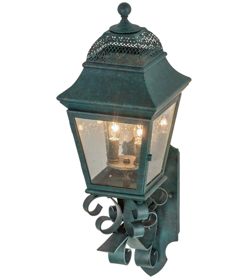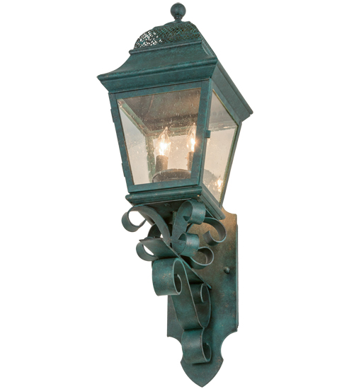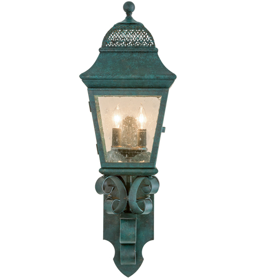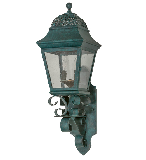 Enjoy the rich time-honored look of Arnette, this exquisite lantern design reveals classic styling and superior handcrafted construction. The shapely lantern features Clear Seeded glass, which is complemented with a frame, scroll arm and accents, and hardware offered in a Golden Verdi finish. The sconce illuminates with 2 customer-supplied faux candlelights and is available in custom colors, designs, sizes and dimmable energy efficient lamping options such as LED. The fixture is UL and cUL listed for wet and dry locations.