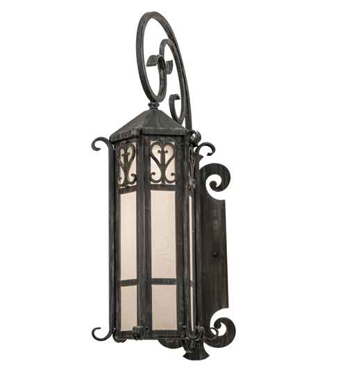 Grand stature and an ornate hand-forged metalwork create a rich, luxurious look for Caprice. This high-styled wall fixture features Frosted Seeded art glass, which is enhanced with a scrolled arm and accents featured in an Antique Iron Gate finish. This sconce is ideal to complement a variety of architectural styles for today’s exteriors and interiors. Custom crafted in the USA, this fixture is offered in custom sizes, finishes and styles, as well as energy efficient lamping options.